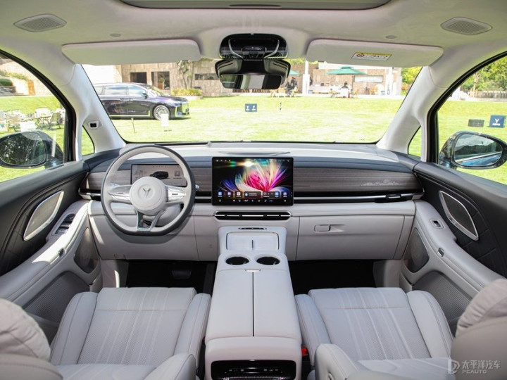 内饰方面,新车在中控区域加入了木质饰板,整体质感更加高级。全车7个座位配备了7块屏幕,包括10.25英寸液晶仪表、一块15.6英寸的中控屏、后排17.3英寸3K娱乐屏以及后排双6英寸扶手屏。